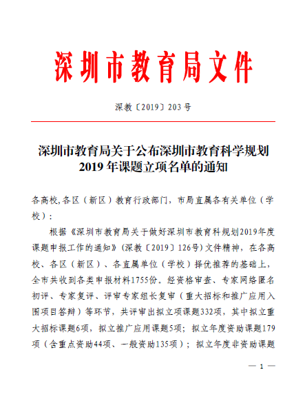 课题通过深圳市推广资助课题立项