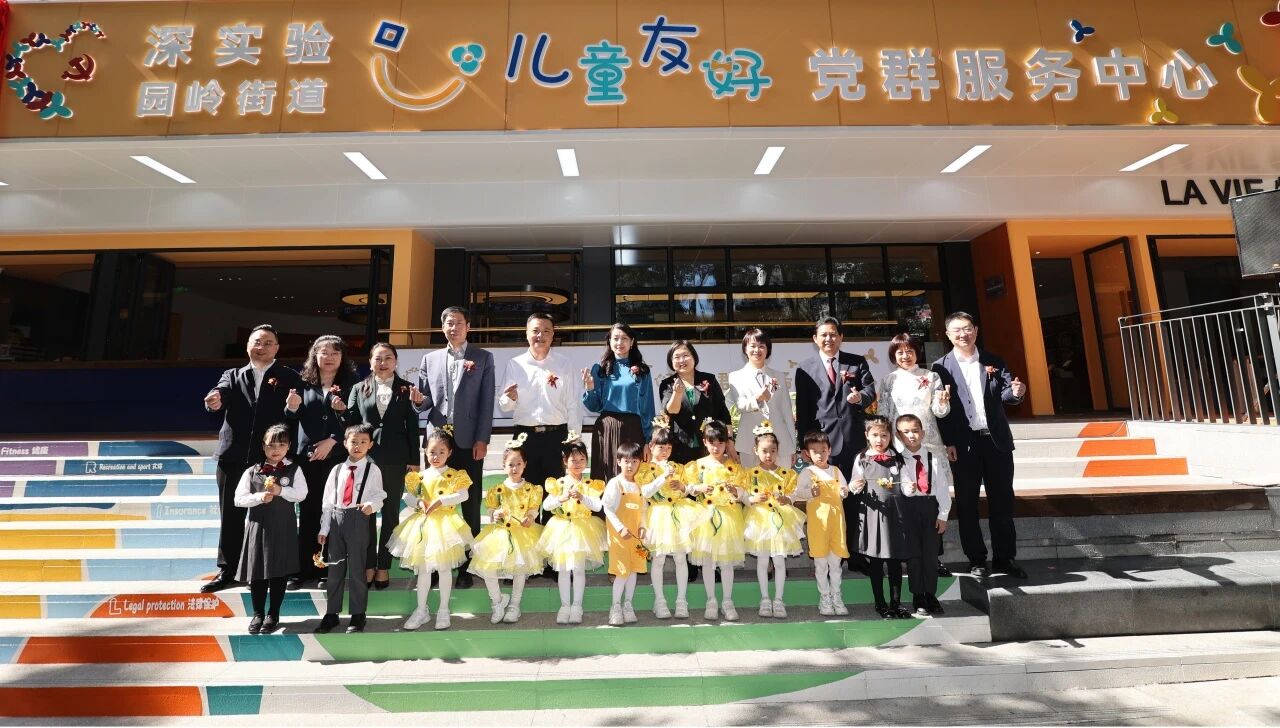 深实验·园岭街道儿童友好党群服务中心位于深圳实验学校文博馆(原深圳实验学校综合楼)一层,于2024年12月2日正式揭牌并对外开放。该中心占地面积达4300平方米,由深圳实验学校和园岭街道共同建设,是全国首个以儿童友好为主题的党群服务中心。中心内有各种儿童绘本、益智设施琳琅满目,还展示了丰富的公益课程和文化活动成果,现已成为周边学子课后休闲的童梦乐园。