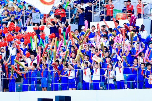 在老师的精心组织和我们几个啦啦队员的带动下,我们实验学校的同学现场气氛既热烈又有序,欢呼声、呐喊声、加油声,一浪高过一浪,手中挥舞着花球,用我们最真诚的助威方式参与这场盛宴!