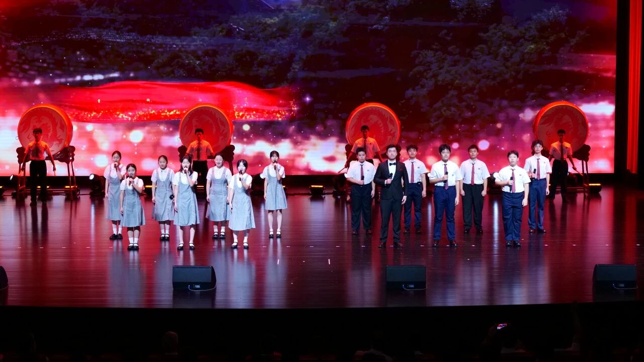 余音袅袅,情意绵长。学生代表袁乐萌、郑泸杰、詹镇菡、张朝阳、姚思晨、张咏涵相继登台,倾情献唱经典之作《我爱你,中国》。歌声嘹亮,情真意切。台下师生挥动手中国旗,如赤浪翻涌,似心火燃烧,汇成一片跃动的红色海洋。