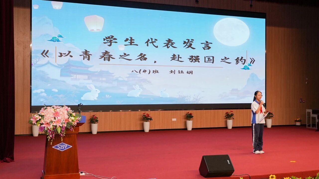 9月29日,深圳实验光明学校在报告厅隆重举行“实光学子贺华诞,青春韶华共月圆”主题晨会。