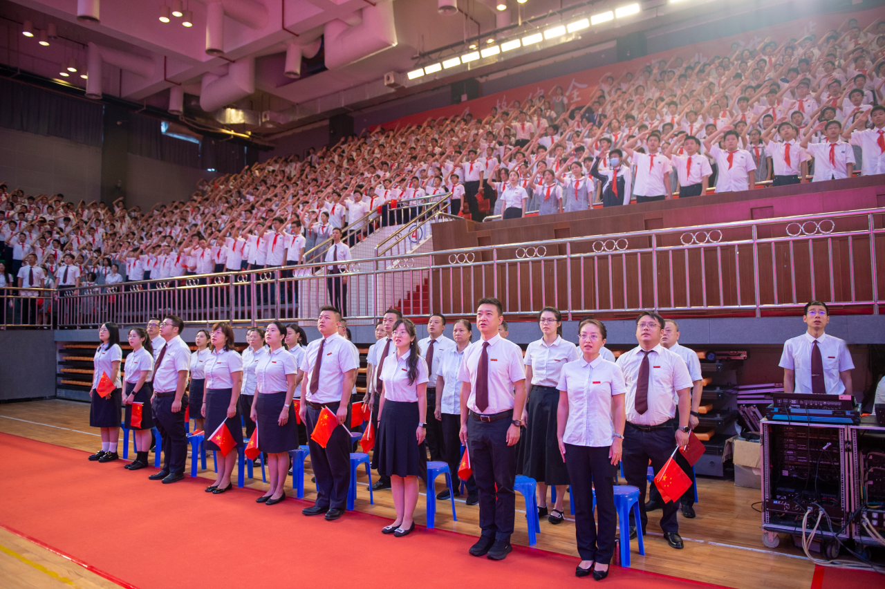 9月30日早上,初中部隆重举行喜迎国庆中秋大会。全体师生以庄严仪式敬祖国,以激昂歌声颂山河,以赤诚誓言赴使命,在秋阳下铸魂,在清风中立志,共谱青春报国的崭新篇章。