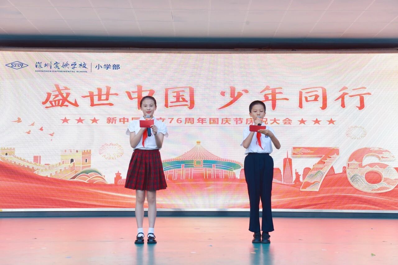 七十六载风雨兼程,盛世华章再谱新篇!深圳实验学校全体师生将以此次活动为契机,继续传承红色基因,厚植家国情怀,以更加坚定的理想信念、更加昂扬的奋斗姿态投身于学习和工作中,勇担时代使命,矢志拼搏奉献,谱写深圳实验学校高质量发展的崭新篇章。让我们共同祝愿伟大的祖国繁荣昌盛,国泰民安!(文/图 各学部)