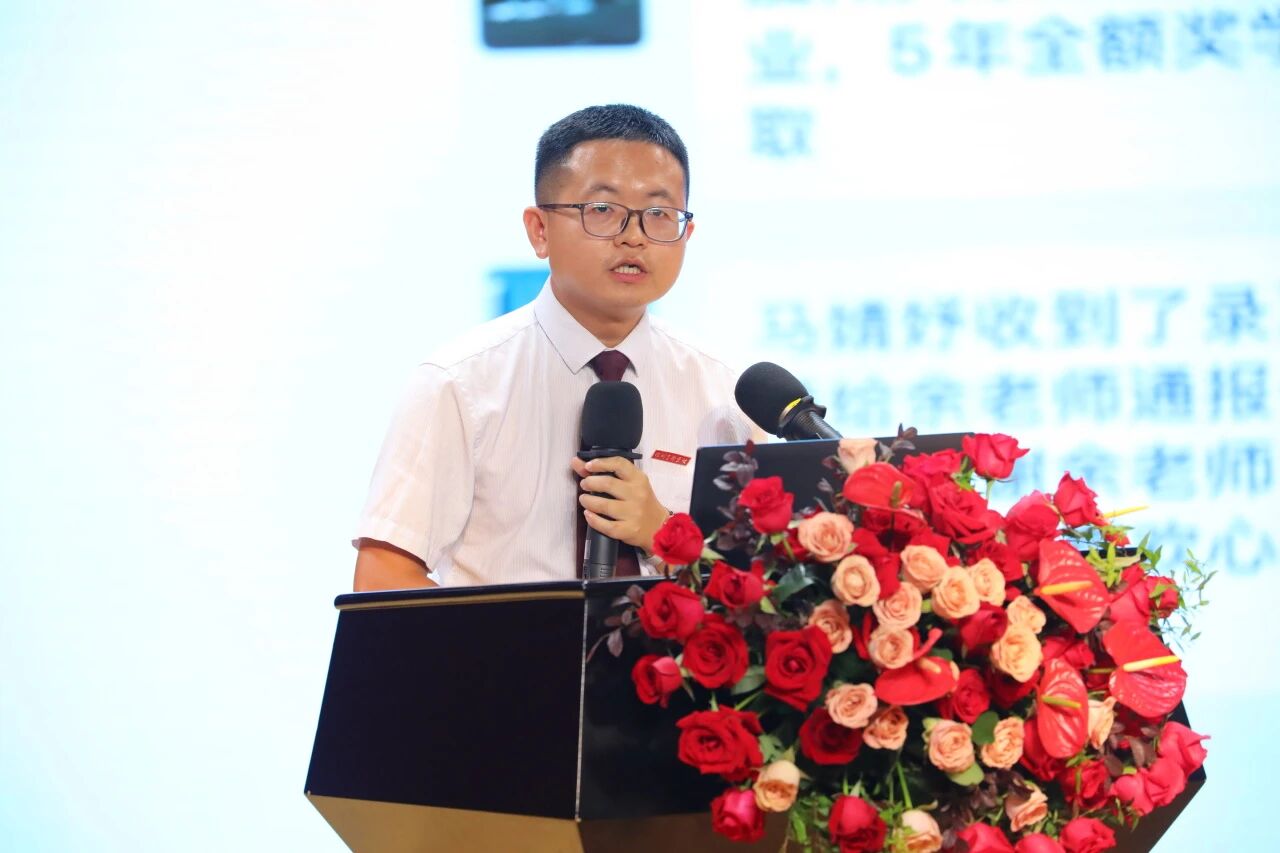 高中部的徐尤清老师以“十年实验路,一生教育情”为题,回顾了在高中部的十年教育历程。从初入实验时面临挑战的忐忑,到通过教学实践实现专业成长;从初期关注分数,到领悟“培养人格健全、和谐发展人才”的教育真谛。徐老师重点阐述了其教学创新实践:通过跨学科合作,将数学知识与现实生活有机结合,有效提升学生的探索能力。他始终致力于培养“眼中有光,心中有梦”的新时代青年,充分展现了实验教师“为国育才”的使命担当。
