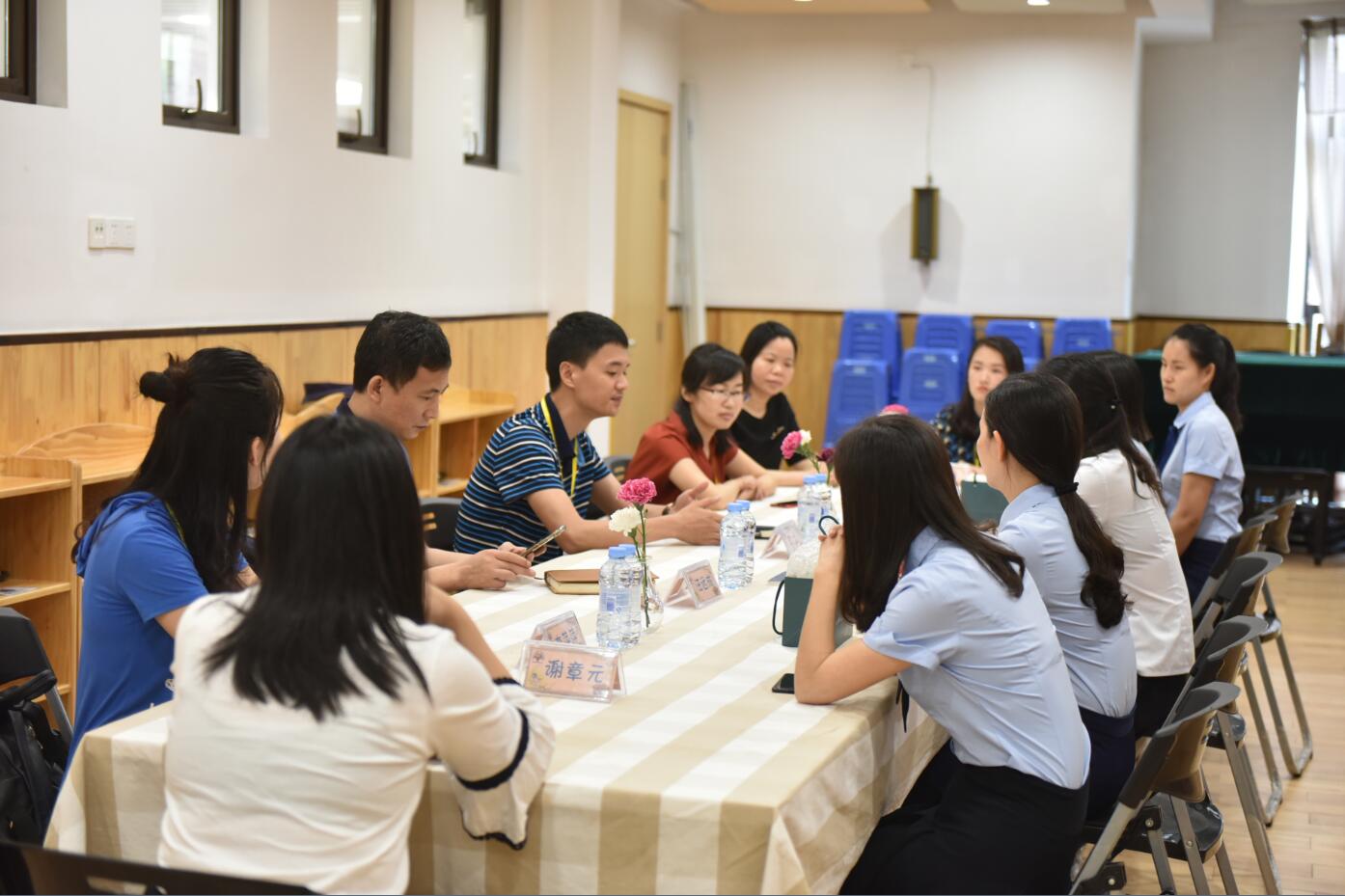 梅龙实验幼儿园王园长、王助理及大班组的三位班主任老师热情地迎接大家的到来,并举行了一场简短的见面会。