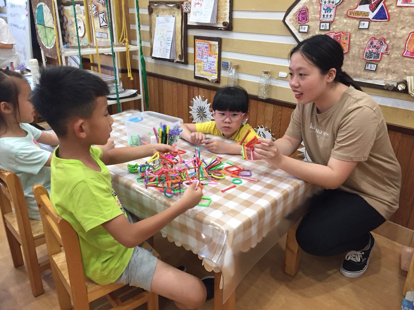 在随后的跟岗过程中,三位小学老师很快地融入了班级生活中,她们陪同孩子们一起阅读、指导孩子前书写的练习、陪伴孩子们玩游戏……