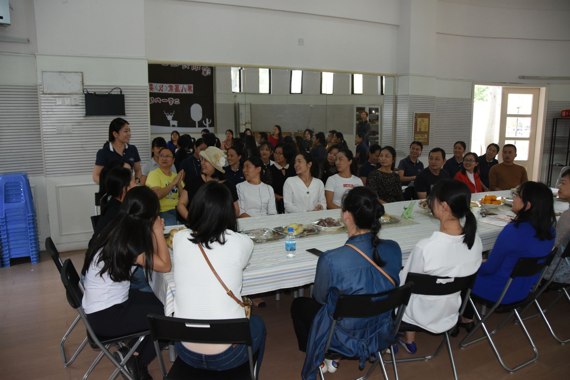 相遇相识是一种难得的缘分,每一次家委会成员的相聚都像亲人般的团聚。一句亲切的问候,一个温暖的微笑拉近了彼此之间的距离。实验星河时代幼儿园家(伙)委会议在黄园长和各班家(伙)委成员及各班班主任的自我介绍中拉开了帷幕。