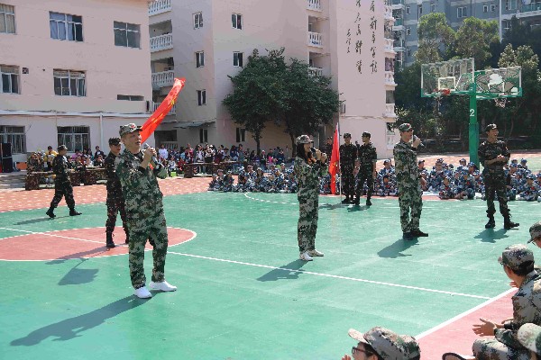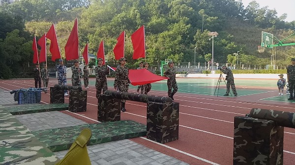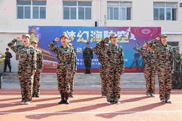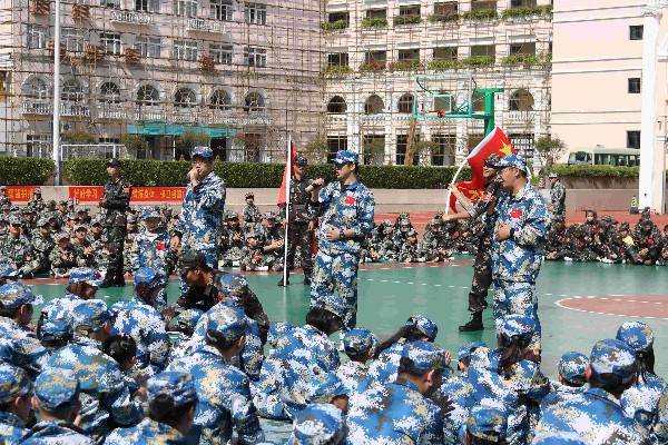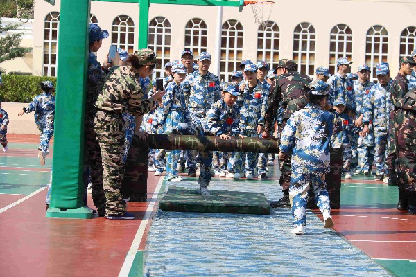 在教官军体拳和三军的律动展示后,紧张的军事训练开始了,匍匐前进、水上冲浪、翻越丛林、铁甲战车、救护伤员……一个个的激烈项目让大家学会了自强自立、坚持到底。军事训练结束后,三军战队席地而坐,开始了拉歌活动,《团结就是力量》《1234歌》《打靶归来》,响亮的歌声中洋溢着中国人的自豪。最后在女兵们英姿飒爽的舞姿中,我们的军事演习活动圆满结束。