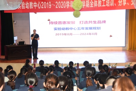 新政策、新形势给实验幼教中心带来了全新的挑战,为更好地推进各园所的发展,经过一年多的反复修改、广泛征求各方意见,《深圳实验教育集团幼教中心五年发展规划(2019年至2024年)》终于成形,并于2019年8月28日上午在小学部报告厅举行了面向全体教工的宣讲会。
