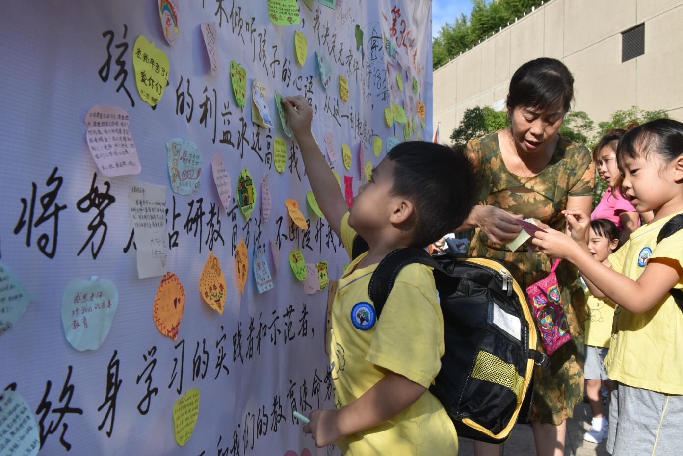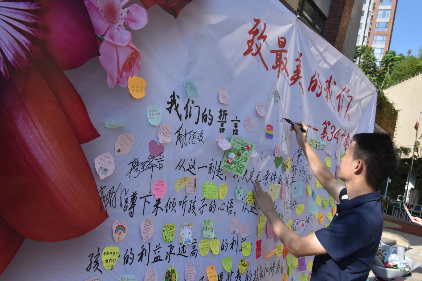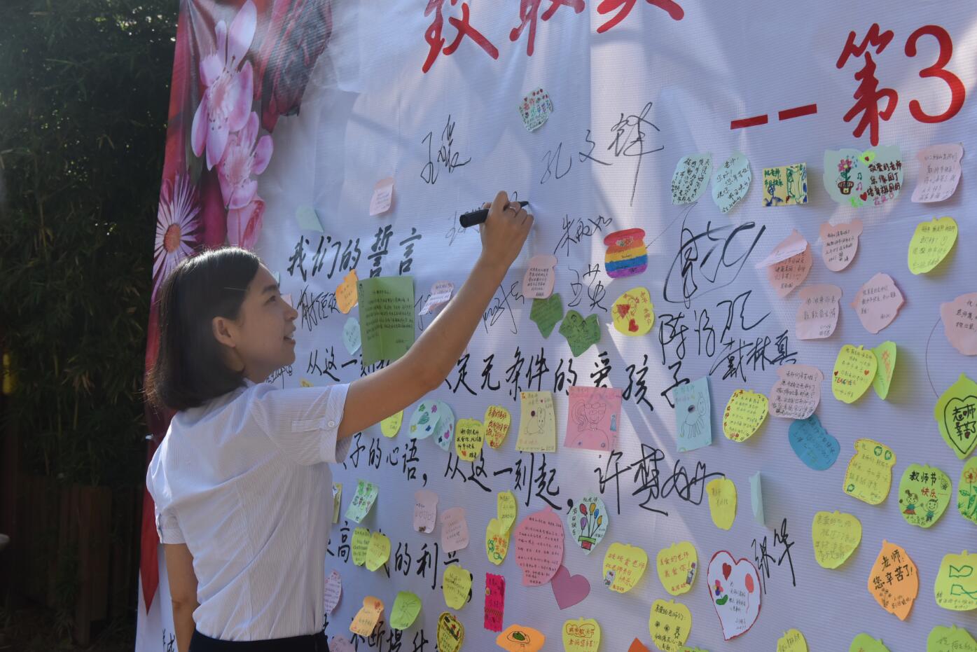 沐浴着晨起的阳光,我们在庄严的教师誓词下,签下自己的名字,时刻告诉自己:牢记教师使命,谨守职业道德,秉承实验精神,传承实验情怀。