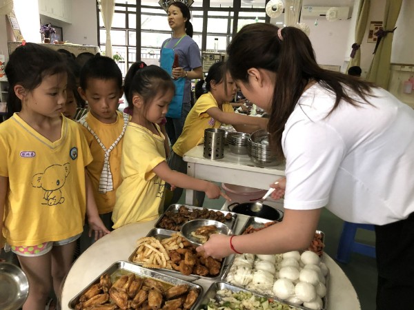 在这快乐的节日里,食堂的叔叔阿姨为我们准备了丰富的自助餐,小朋友们个个睁着圆溜溜的小眼,看着那薯条、鸡翅、热狗……直流“口水”了,“再看我再看我,再看我就把你吃掉”,大家一起品味缤纷美食,乐享六一好时光。