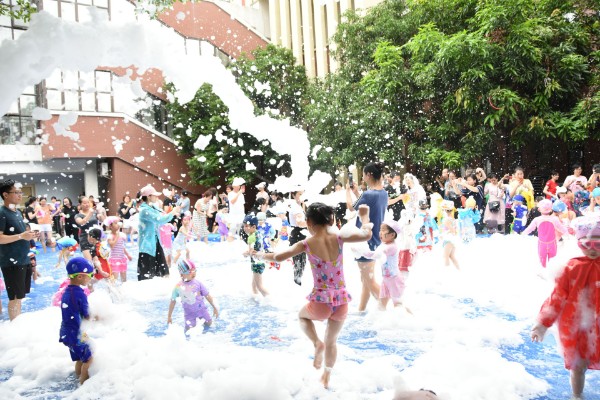 一场盛大的“梦幻泡沫·嘉年华”活动拉开了帷幕,中班和大班的小朋友、大朋友们在大大的水池、泡泡的海洋中尽情的舞动、尽情的燃烧、尽情的狂欢!