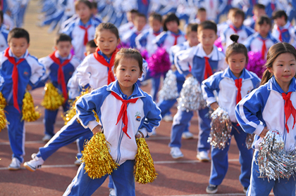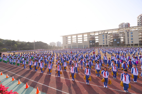 当衷敬高校长宣布运动会开幕时,一、二年级的小朋友们在老师的带领下兴奋地从主席台两侧跑来,他们欢呼雀跃,表达着内心的快乐和喜悦。