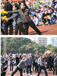 团体操表演将开幕式的气氛推向高潮,刚柔并济的太极表演如行云流水,招招入境、式式夺人。青春活泼的健美操,网球社团和曲棍球社团酷炫的动作展示,天真烂漫的兔子舞和积极向上的七彩阳光广播体操表演,展示了实验学子热爱运动、健康向上的青春风采。