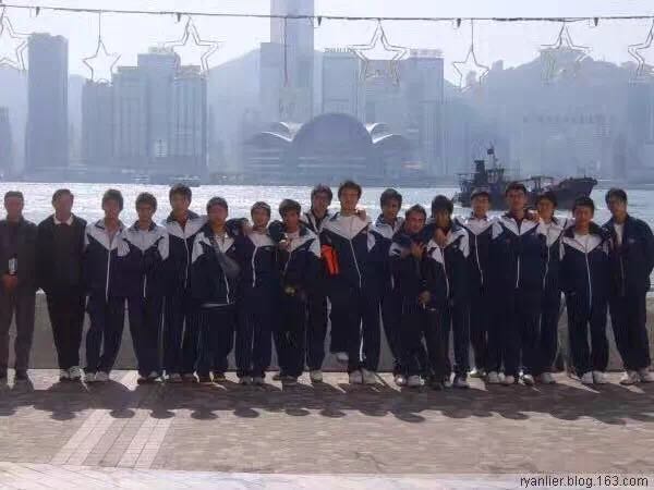 *图为2005-2006年度深实足球队出征队员在维多利亚港合影