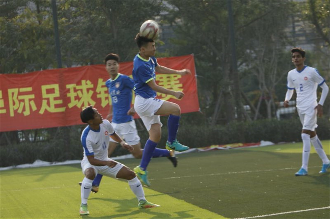 *图为对阵香港代表队时双方争顶头球