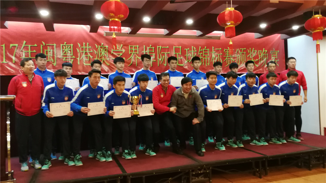 12月10日晚,主办方福建省教育厅专门为参加2017-2018年度闽粤港澳学界埠际足球锦标赛的队伍举办颁奖晚宴,福建省教育厅副厅长李迅、厦门市市委教育工委书记、市教育局局长郭献文,市委教育工委委员、市教育局巡视员任勇,福建省教育厅体卫艺语处处长陈丽红、厦门市教育局体卫艺处处长洪建军等领导同志出席。