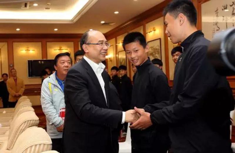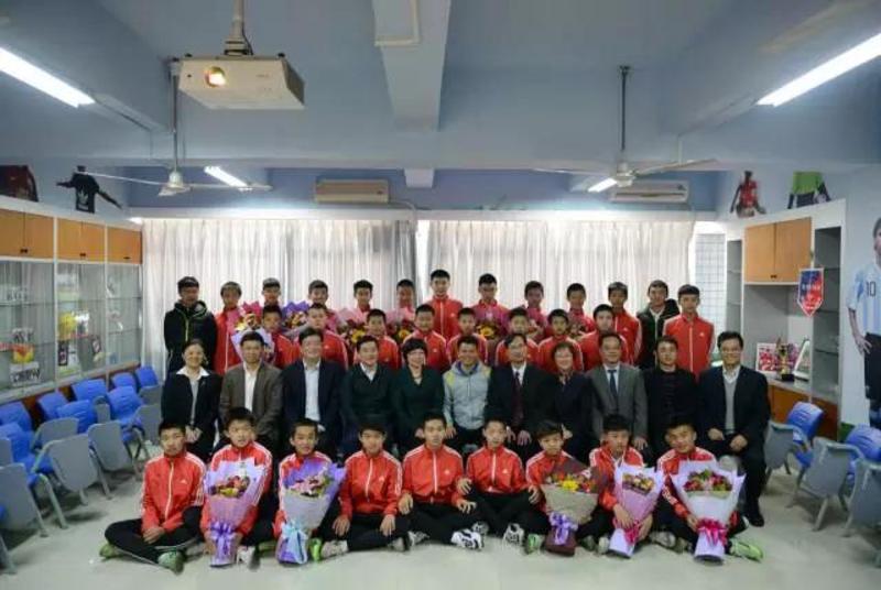 时任深圳市市长许勤、市教育局领导亲切接见了在全国青少年男子U15足球锦标赛上获得冠军的孩子和他们的教练,勉励孩子们球业、学业双进步,德、智、体全面发展。