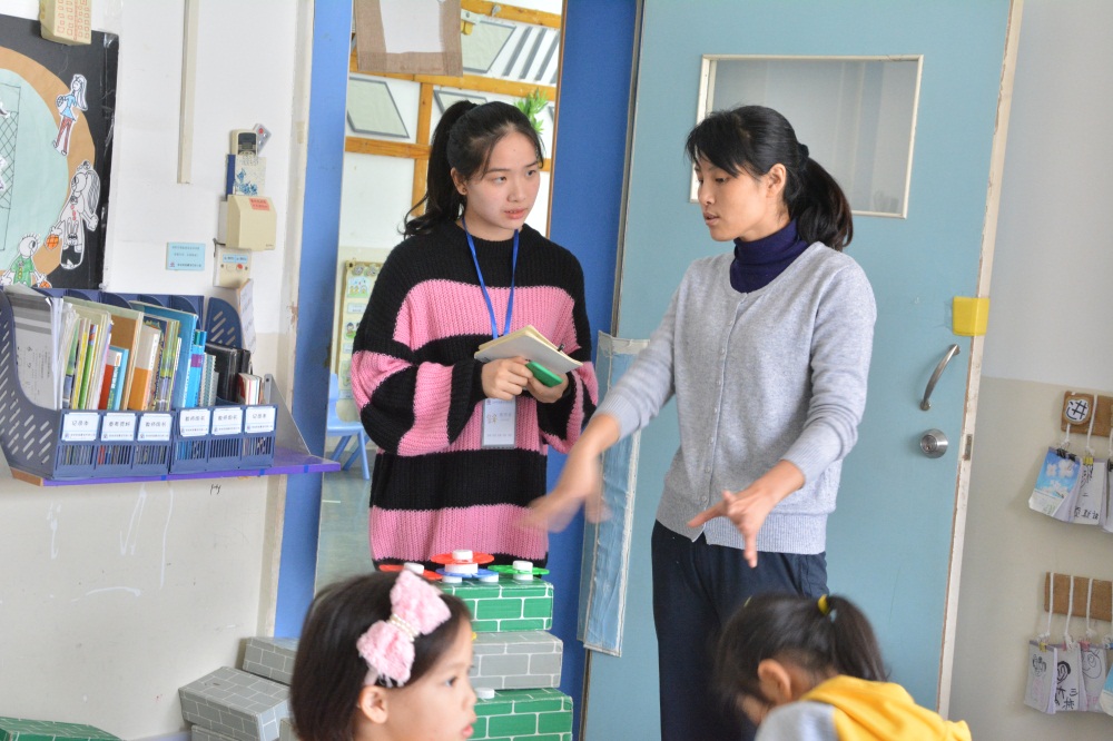 为了使跟岗培训更具有实效性和针对性,我们将新手教师划分为三个小组,竞选了小组长,上午8:30分至11:30分,新手老师进班学习。他们既是旁观者、学习者、参与者、孩子活动的陪伴者,同时也是环境与材料的检阅者。但无论何种身份、何种角色,他们学习目的明确、有疑必问,而班级老师对于他们的问题,也是有问必答。在半日活动的开放中,小、中、大班分别就晨谈、户外活动、区域活动、餐前活动向她们进行了展示与开放,活动各具年龄特点。
