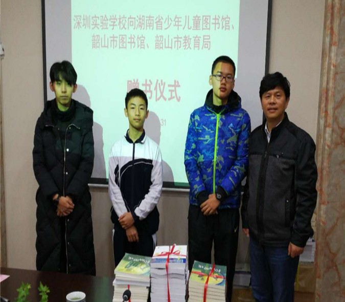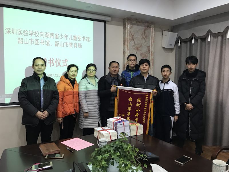 2017年12月30日至2018年1月1日,我校少年人文学院副院长、小荷文学社总指导暨《教学相长集》编著者傅芳觉老师率领《控脑游戏》作者王艺博同学、《我玩故我在》作者尹杭同学、小荷文学社总干事陈叙含等师生一行,应邀参加深圳实验学校向湖南省少年儿童图书馆、韶山市图书馆、韶山市教育局赠书仪式暨与读者分享会。