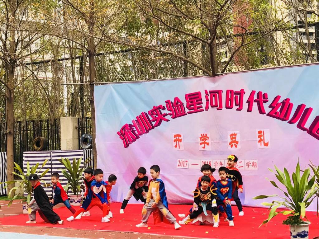 各班幼儿为大家献上热闹喜庆的舞蹈《中国范儿》《恭喜大家新年好》《新年好》《宇宙超人》,孩子们的表演赢得了满场的掌声。实验星河时代幼儿园的家长艺术团美丽可爱的妈妈们带来精彩的表演《夸实验》,他们的表演给幼儿园增添了一道亮丽的风景。青春洋溢的老师们带来的舞蹈《溢彩飞扬》为开学典礼画上了完美的句号。