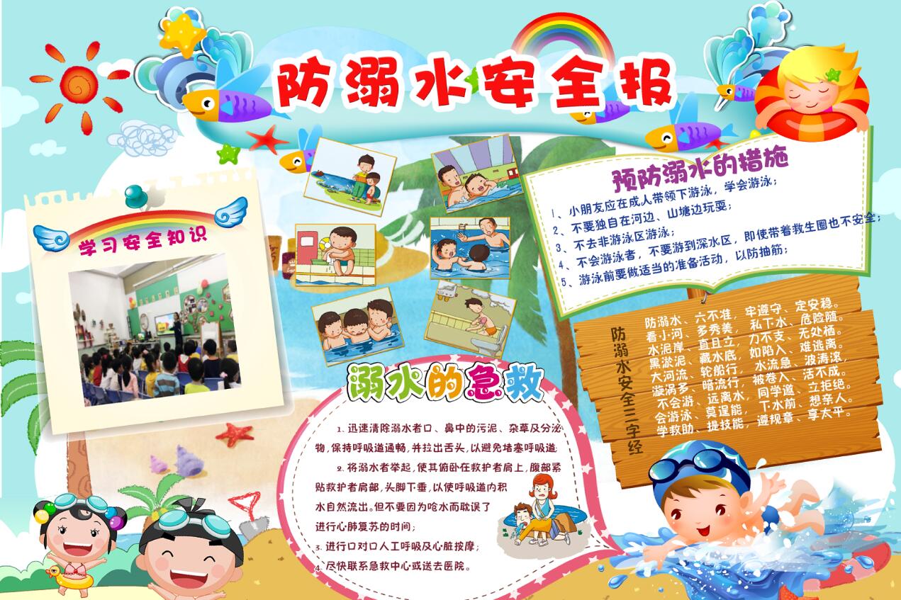 开学的第二周是幼儿园的安全教育周。安全教育活动的组织丰富多彩,师生家长参与度高,亮点不少。值得一提的,一是全园教师和幼儿,在福田区学校安全教育平台上,学习并完成课后作业,教师授课率和幼儿作业完成率均达100%,区排名榜上有名;二是全园10个班级将幼儿要掌握的基本安全常识,选择不同的安全教育主题(交通、防拐、食品、防溺水、自然灾害等)开展教育活动,并设计出安全教育宣传海报,全园共享,积累园本安全教育资料的同时,张贴在社区宣传。