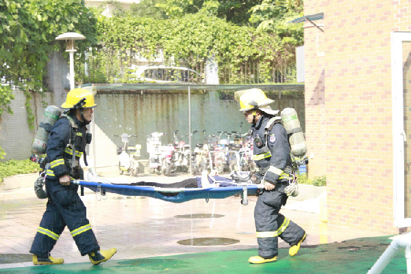 为进一步增强我园师生消防安全意识,提高防范自救能力,9月19日,深圳实验新亚洲幼儿园联合紫薇消防站举行了消防逃生演练,本次消防演练模拟着火点是三楼教师办公室。下午三点三十分,演练开始,教师办公室的三位老师按照分工:拉电闸、灭火、报警、大声呼喊通知撤离,各班老师选择就近安全路线,有序的带领孩子们跑到安全区域,后勤人员到各通道进行疏散,消防员救助被困教师,整个过程用时两分四十五秒。