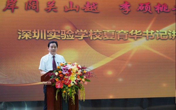 颁奖仪式结束后,深圳实验学校党委书记夏育华同志发表《赓续初心,致敬师者》的主题讲话。夏育华书记代表党委及全体行政班子成员向恪尽职守、躬身育人的全体教职员工和退休老同志致以节日的问候和崇高的敬意,向所有关心支持学校发展的各界人士、广大校友和教师家属,致以亲切的问候和衷心的感谢!