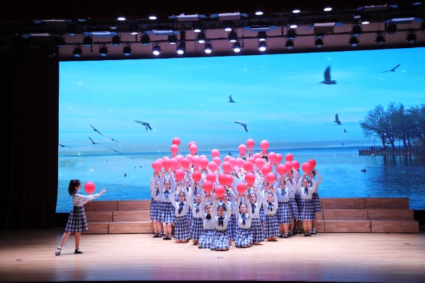 大会最后,初中部晰耳合唱团带来歌曲《如愿》,伴随清脆悠扬的歌声,数十枚红色气球缓缓组成一颗跳动的爱心,正如每一位实验教师永远燃烧的教育灵魂。