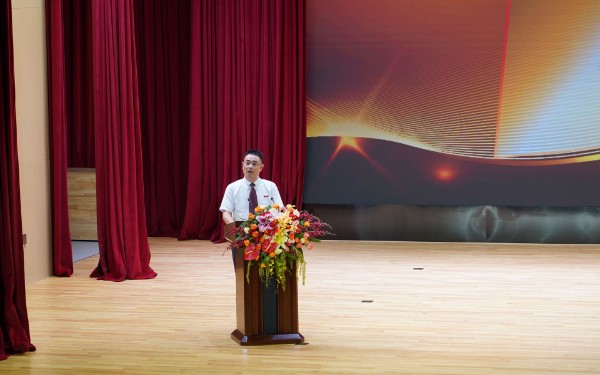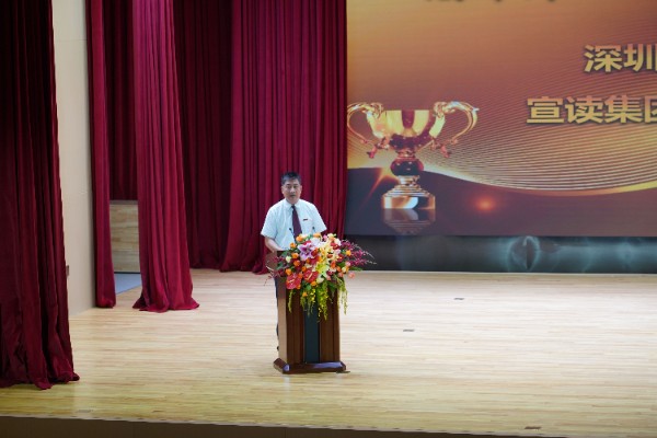 深圳实验学校邓旭副校长致开幕辞。他首先代表学校党委向全体教职员工致以最崇高的敬意和最衷心的感谢,接着向在深圳市教育局组织的年度教育工作先进单位和先进个人的推荐评选工作中光荣上榜的7位老师表示最热烈的祝贺。