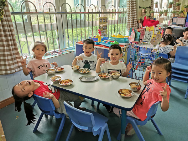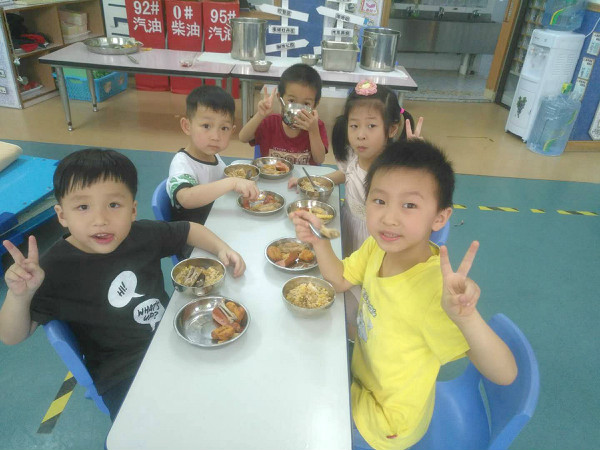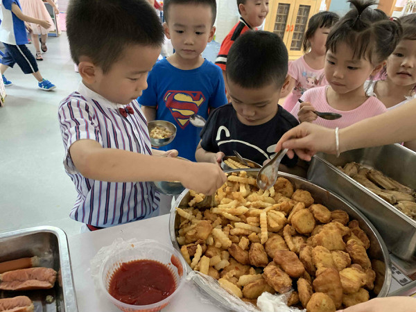 快乐的日子里,一定少不了美食的陪伴。班级老师提前和孩子们商讨自助餐的菜品,孩子们还动手设计了菜单,最后幼儿园根据孩子的喜好,准备了丰盛的自助午餐:火腿肠、麦乐鸡块、卤鸡翅、薯条、卤排骨、排骨苦瓜汤、五彩饭,孩子们根据自己的喜爱来选择美食,个个脸上绽放着灿烂的笑容,不仅学会了等待、谦让,养成了文明用餐的好习惯,同时也体验了自助午餐的自主和乐趣。
