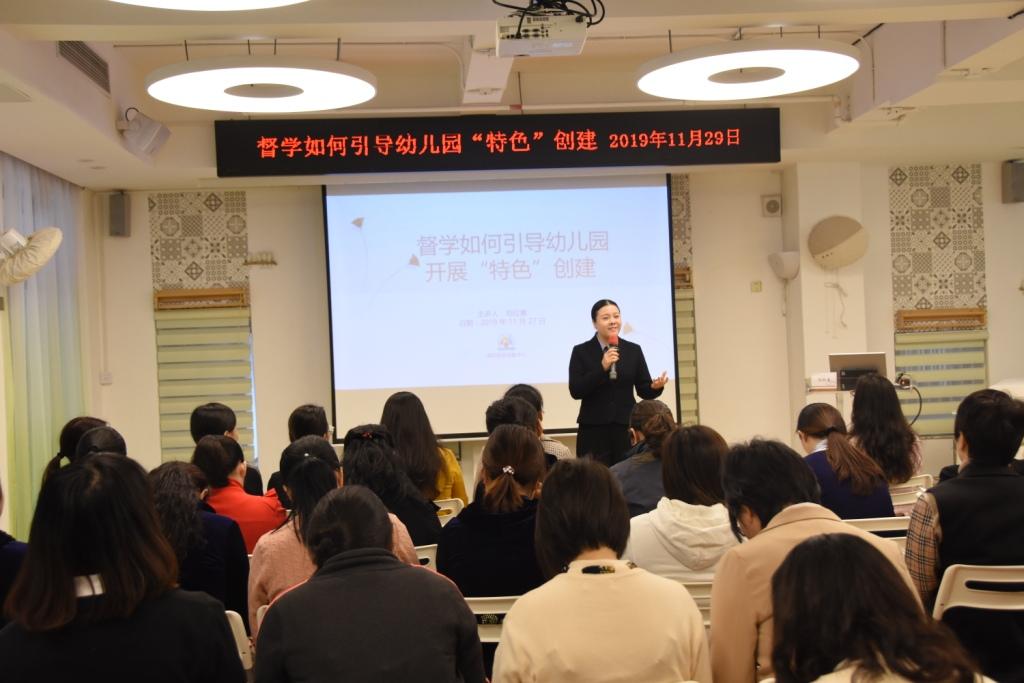 2019年11月29日,实验幼教中心刘红喜主任受龙岗区教育局邀请到“祝万君督学工作室”作《督学如何引导幼儿园“特色”创建》的专题培训。刘红喜主任以实验幼教中心为案例,对办园特色、特色课程及课程特色,进行了详细的分析与解说,加深了大家对实验品牌特色的理解。