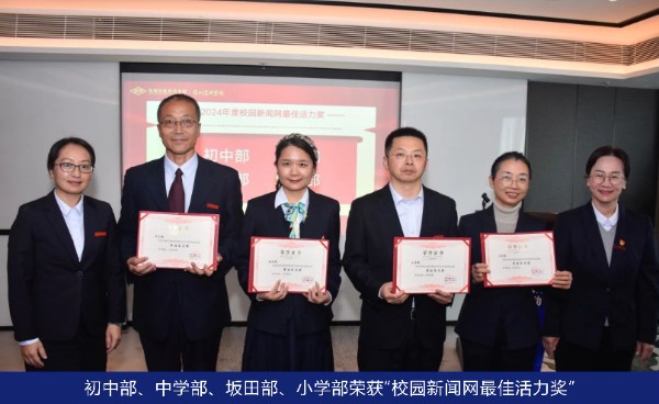 校党委副书记、主持行政工作副校长、高中部执行校长邓旭宣读了表彰决定,指出2023年12月成立新媒体中心以来,集团总部和各学部充分挖掘和弘扬我校办学理念,展现我校教育教学突出成果和广大师生良好风貌,在公众号和校园网等平台上推出了一批优秀的宣传作品,有效提升了学校的社会影响力和美誉度。随后,夏育华书记以及邓旭、王喜峰、吴立新、李笑梅、张楠、邓娟等校领导先后上台,为荣获2024年宣传工作先进集体的学部颁奖。