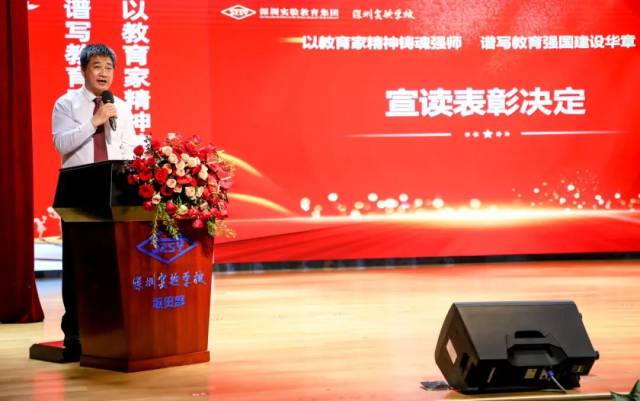 过去一学年,在党的教育方针引领下,学校教学、科研、育人工作全面突破,这些成就凝聚着全体教职工的智慧与汗水。深圳实验学校纪委书记、副校长王喜峰现场宣读了《深圳实验教育集团2025—2026学年度表彰决定》。颁奖仪式由初中部杜文正老师、张然两位老师共同主持。