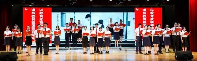 在庄严的国歌声中,教师节庆祝表彰大会拉开帷幕。