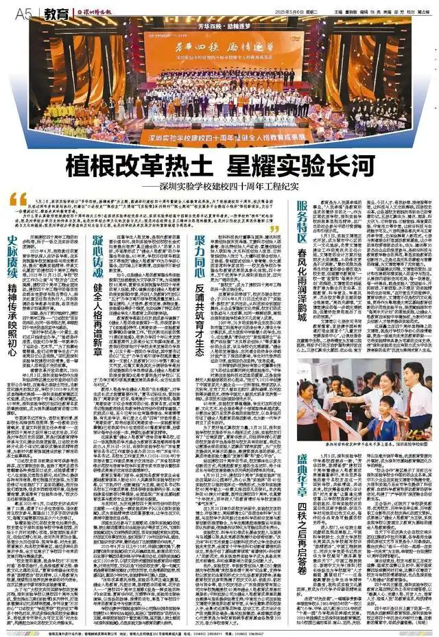 四十年不是日历上撕下的某一页,而是永远新鲜的教育现场。深圳实验学校正将四十年沉淀化作前行力量,在崭新的篇章中,依然步履铿锵。(郑铭)
