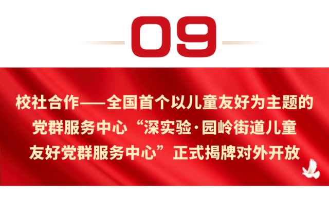 12月2日,全国首个以儿童友好为主题的党群服务中心“深实验·园岭街道儿童友好党群服务中心”正式揭牌对外开放;12月10日,深圳实验教育集团与深圳市档案馆签署合作协议并为“现场教学基地”揭牌;目前,深圳实验学校正在建设实验文化博物馆,邀请国内知名企业设立科技教育、金融教育、劳动教育等专题展馆,打造家校社协同育人“校联体”范式样本,建成深圳教育“每周半天计划”示范基地,探索“一校一馆”新模式新路径,助力青少年全面健康成长。