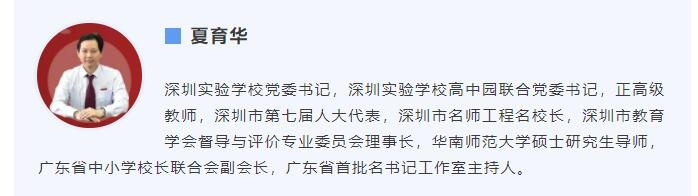 在历任校长及现任党委书记夏育华的掌舵下,深圳实验学校以“不断进取,永不满足”的精神推进教育高质量发展,实现了“做大做强,强大并行”的战略目标,先后获得国家级示范性普通高中、全国艺术教育先进学校、全国优秀家长学校、全国青少年科技活动先进集体、全国青少年校园足球特色学校、全国少先队红旗大队等16项国家级荣誉。