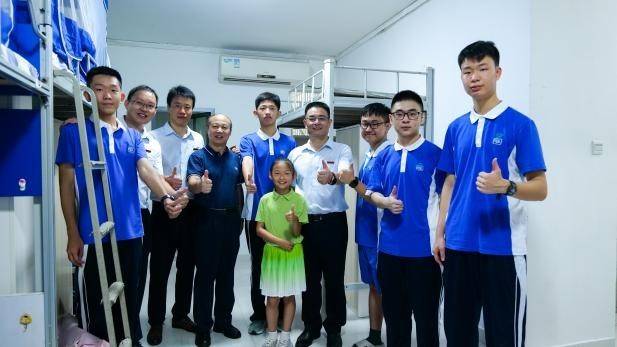 深圳实验学校副校长、高中部执行校长邓旭和各处室干部欢迎家长和新同学,到场视察签到、入住、进班等各项工作有条不紊地开展。