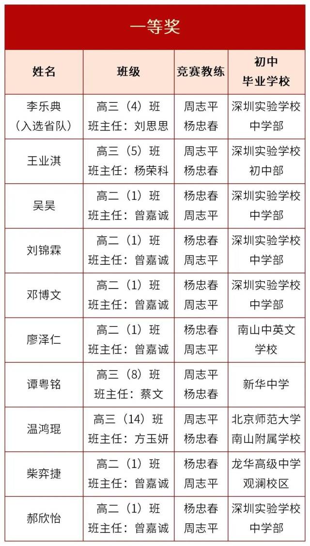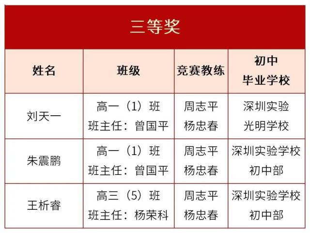 ◐初中毕业学校:深圳实验学校中学部