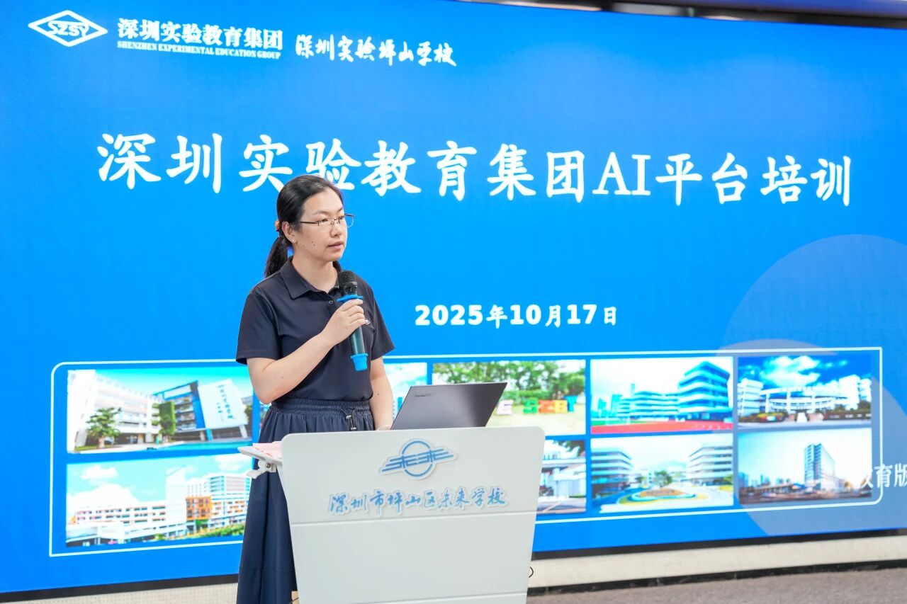 10 月 18 日下午,深圳实验坪山学校在六楼学术报告厅组织操作培训会,对“深实验种子”AI 大平台进行深入学习。