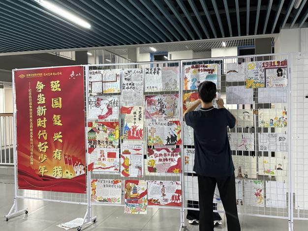 二、红色布展映初心思政课结束后,为让同学们将“对抗战精神的感悟”转化为“看得见、可分享的表达”,学校开展“强国复兴有我・争当新时代好少年”主题手抄报与心得感想布展活动,“以笔为媒、以展为桥”,让红色精神在校园里流动起来,实现“以美育人、以文化人”的育人目标。最终脱颖而出的优秀作品布置在教学楼五楼走廊,成为校园里醒目的“红色风景线”。