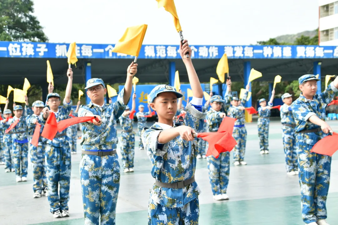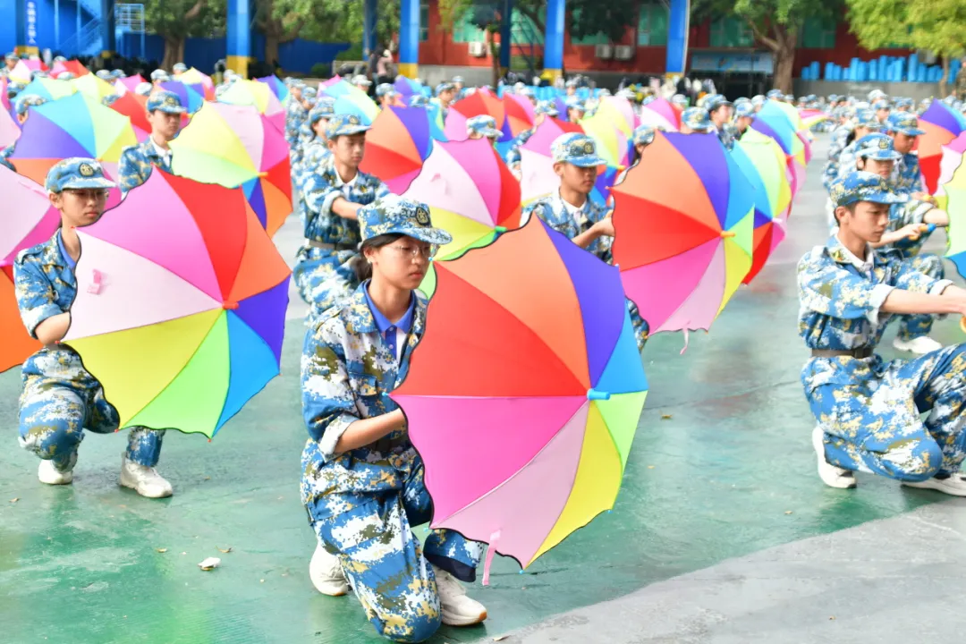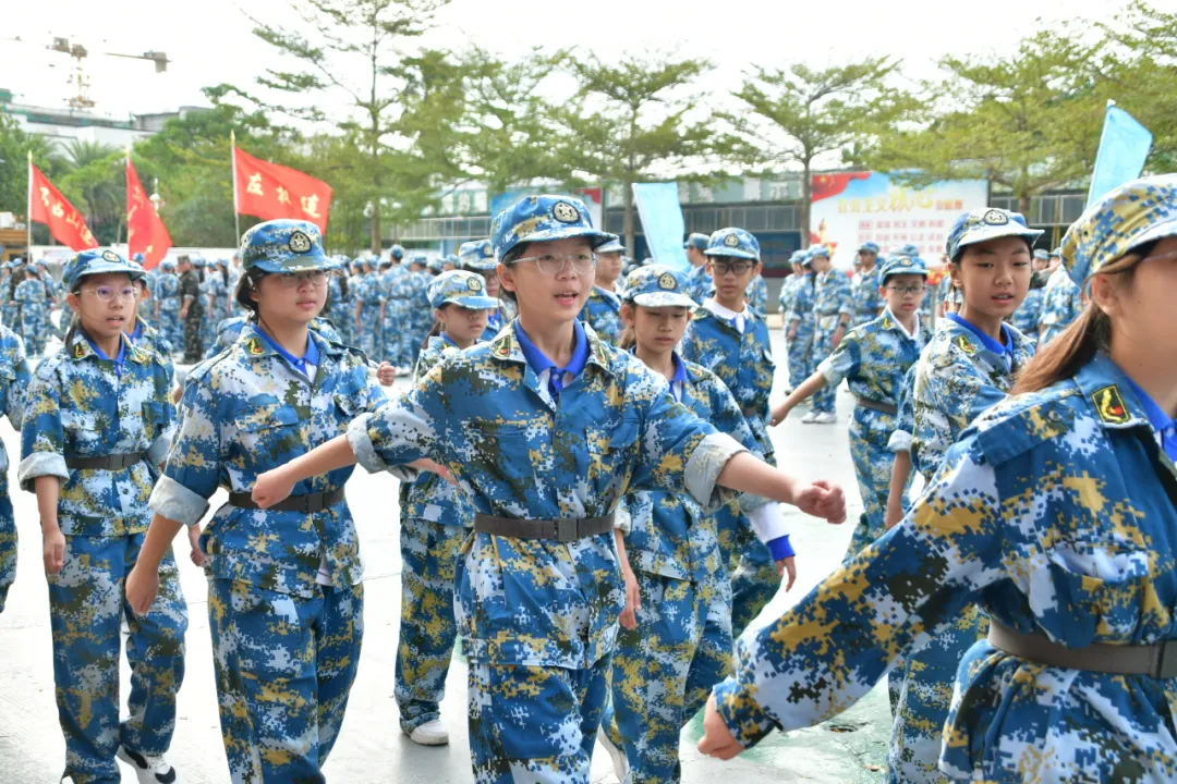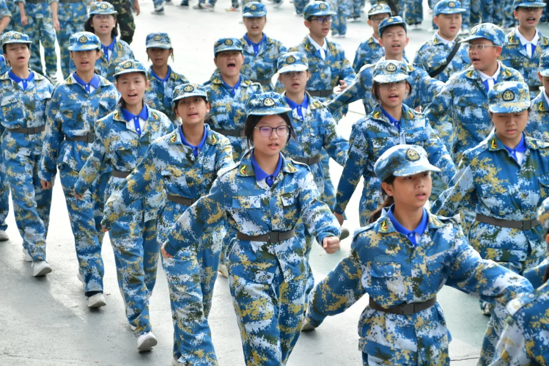 一场承载着特殊意义的开训动员仪式正以庄重的姿态拉开帷幕。同学们规整地划分为一个个方阵,身着军装的少年们身姿挺拔,双手贴于裤缝,目光平视前方,连呼吸都不自觉放轻,生怕打破这份沉静的庄重。