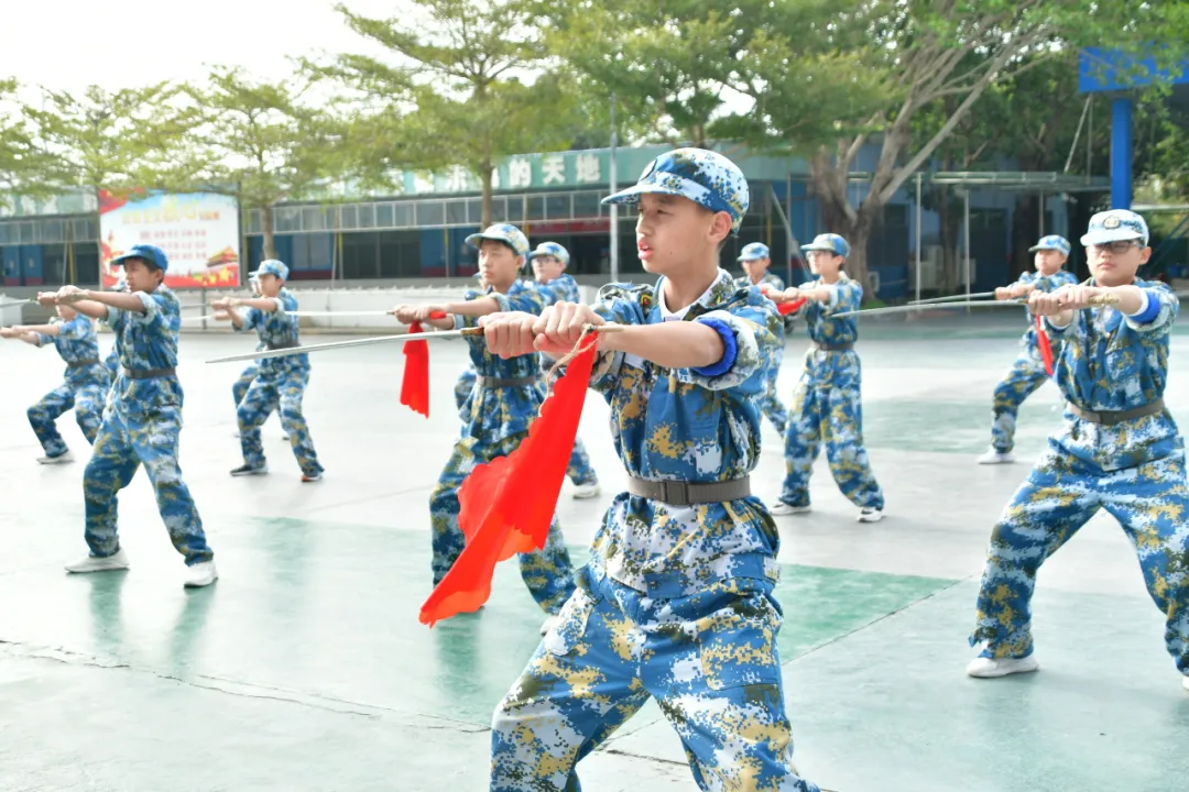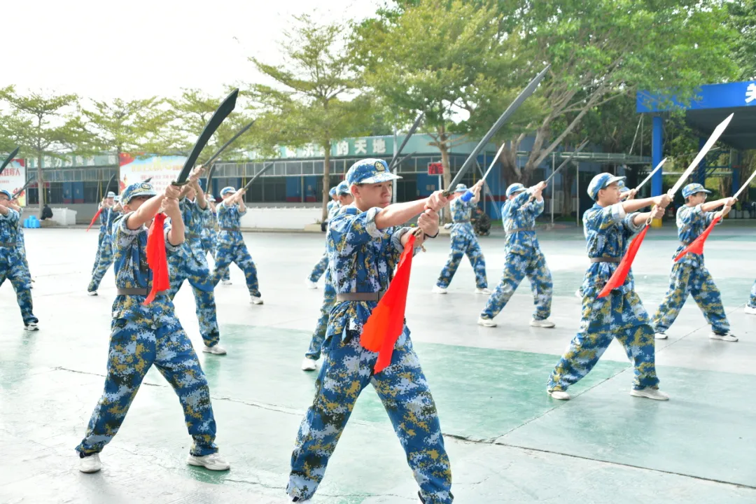 “大刀方队表演”大家整齐划一地做出劈、砍、刺等动作,刀光剑影间,每一个招式都精准有力,没有丝毫偏差。“一劈华山,二劈猛虎,三劈豺狼……” 响亮的口号声震耳欲聋,尽显少年的英气与豪情。