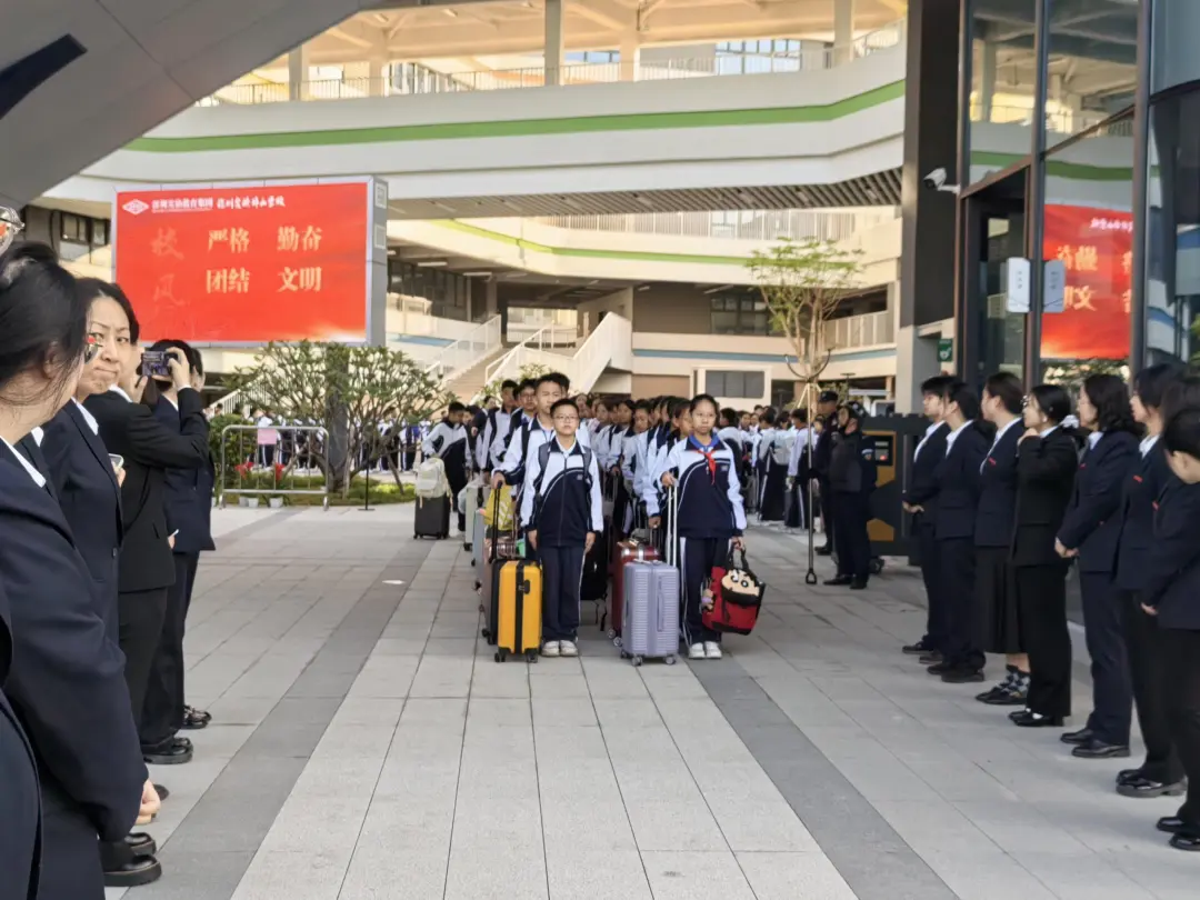 冬日的鹏城暖意融融,青春的号角嘹亮激昂。2025 年 12 月 8 日,深圳实验坪山学校七、八 年级全体师生怀揣着憧憬与热忱,奔赴鹏城营地,开启了一场以“青春当‘燃’ 共筑梦想”为主题的秋季社会实践之旅。五天的时光里,汗水与欢笑交织,协作与成长相伴,每一个活动细节都镌刻下少年们蓬勃向上的身影,每一段珍贵记忆都见证着师生们同心同行的力量。