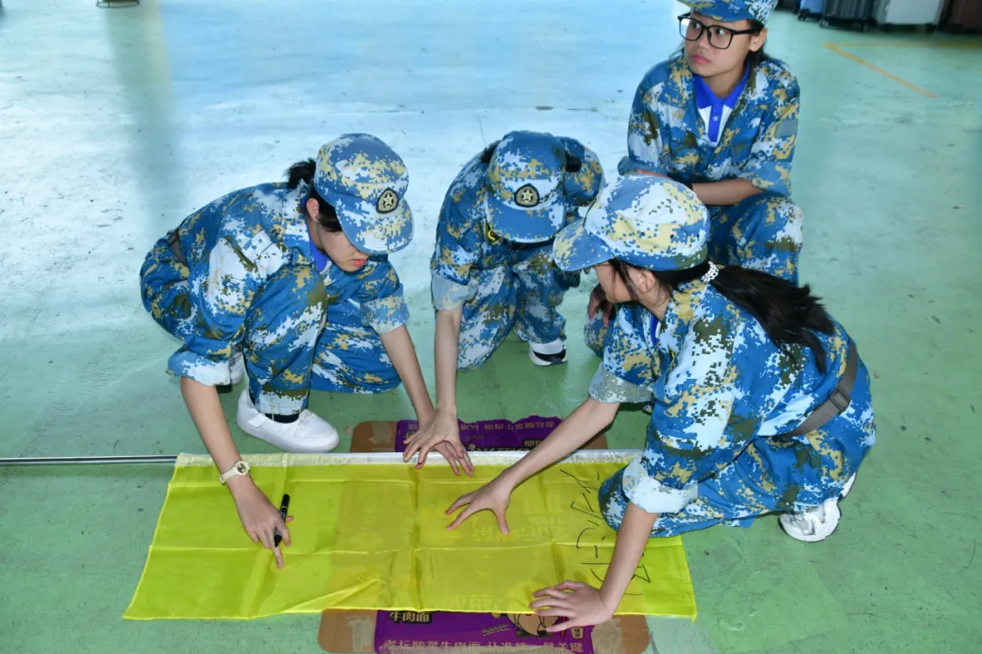 八年级的同学们面临的首个挑战便是团队组建。在这个环节中,大家迅速打破同学与同学之间的界限,积极交流讨论。每个小组都在热烈的氛围中确定了充满创意的队名、独具匠心的队徽以及激情昂扬的队歌。