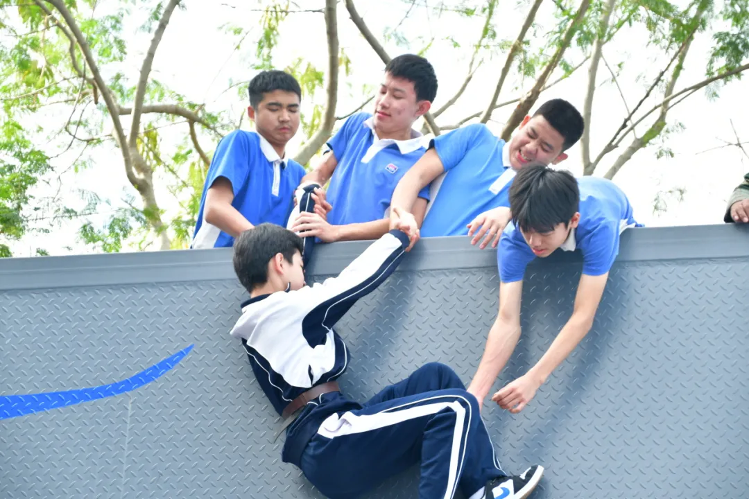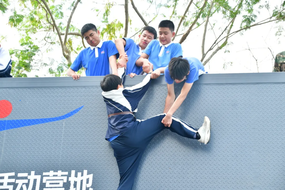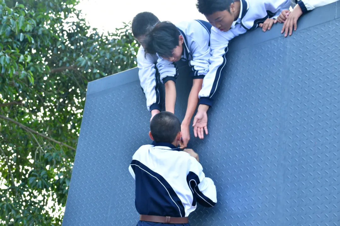 最令人震撼的当属 “成功墙” 挑战。4 米高的墙面光滑无依托,仅凭个人力量绝难翻越体力透支,身边的同学立刻补位接力。这座高墙,不仅是对体能的挑战,更是对意志与团队精神的淬炼,少年们用行动证明,只要同心同德、众志成城,就没有克服不了的困难,没有实现不了的目标。