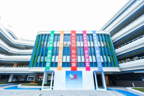 ——蓝白相间、绿植环绕、自然灵动的空间设计,朗朗书声、浓浓书香,描绘出初中部校园勃勃生机的美丽画卷。