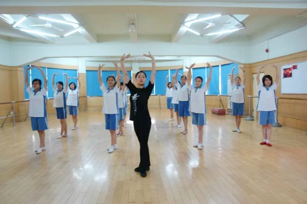 我校七年级每周开设一节形体课。在全国没有教科书的情况下,课程人自编教材进行教学,形成了独特的校本教材风格。