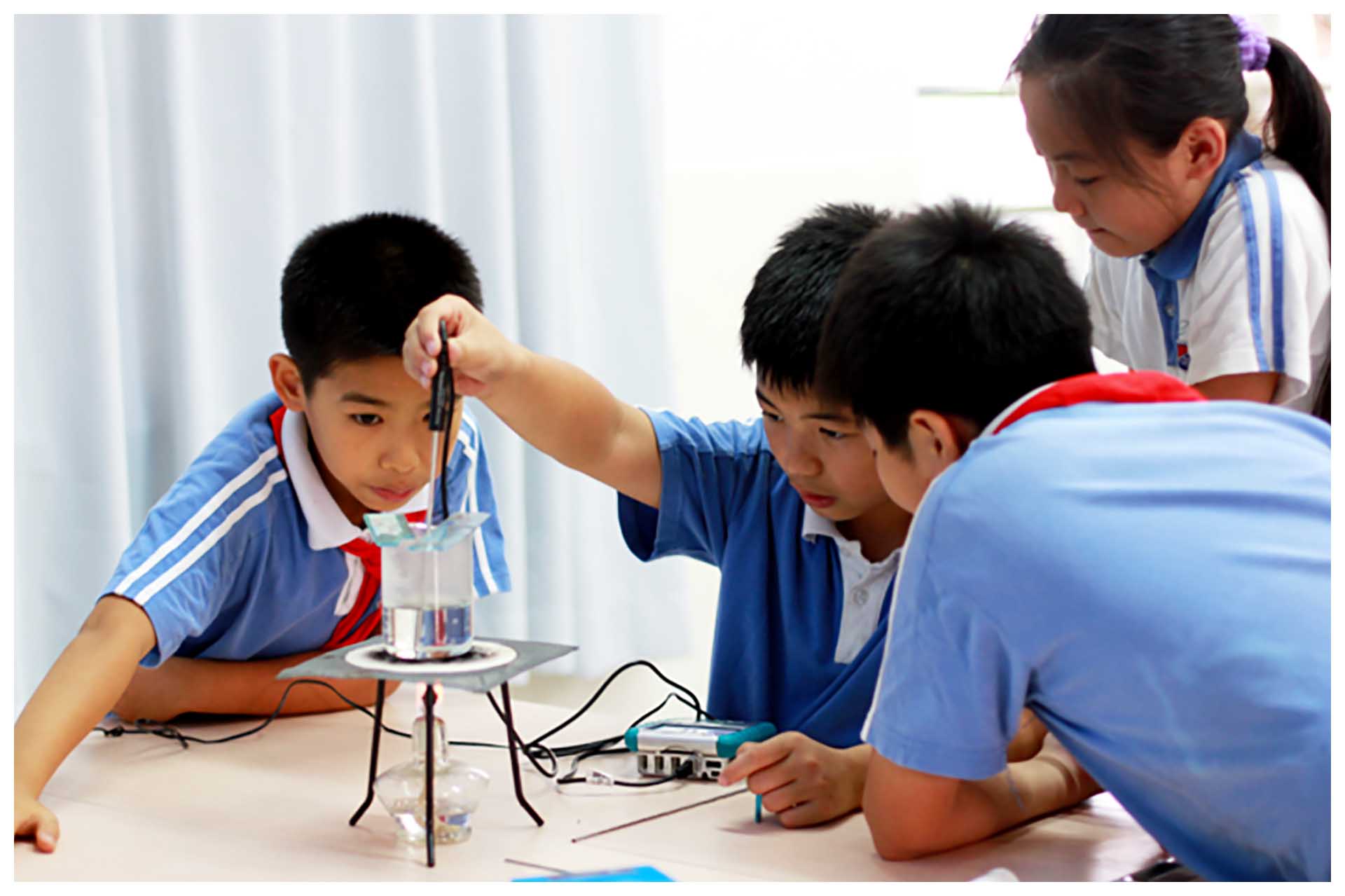 小学部科教课程体系在高标准高质量执行国家课程之余,开设了各式各样面向全年级的校本课程,例如一二年级的STC课程、四年级的机器人课程等都是面向全体学生。2014年起实现所有年级科学课两节联排(中间不换场),让学生有充足时间开展科学探究实践活动。